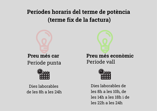 A partir de l’1 de juny entra en vigor un canvi de tarifa estatal en la factura de l’electricitat. Des d’aleshores, l’energia consumida es calcularà en base a tres períodes horaris. N’hi haurà un de més car, un amb preu mitjà i un de tarifa més econòmica. La potència contractada, associada al terme fix de la factura, també podrà variar. En comptes d’una sola potència se’n podran tenir dues per a dos períodes diferents.