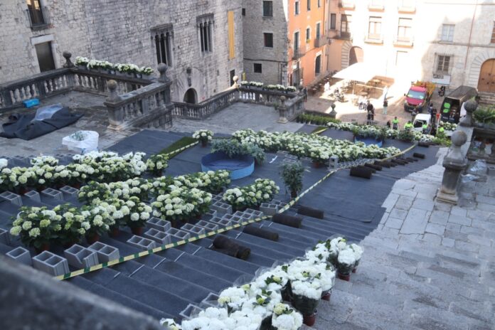 Per commemorar els 70 anys de l’esdeveniment, l’Associació Amics de les Flors i les brigades municipals han preparat un muntatge especial a les escales de la catedral. A més, s’han ampliat els projectes florals a la rambla de la Llibertat –que passen per la façana de la Casa Norat i a sota les voltes fins al carrer de l’Argenteria– per connectar-la amb els ponts i la plaça de la Independència.