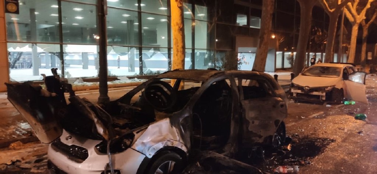 La segona nit de ‘macro botellada” a l’avinguda Maria Cristina de Barcelona ha acabat amb aldarulls. En la segona nit de les festes de la Mercè, milers de joves s’han agrupat a l’entorn de plaça Espanya per beure i ballar sense respectar les distàncies de seguretat i sense mascareta. Alguns grups han fet destrosses al Palau de Congressos, han cremat contenidors, arbres i algun cotxe. També han llençat ampolles de vidre contra els agents de la Guàrdia Urbana que els intentaven dispersar, segons es pot veure en vídeos penjats a Twitter per la periodista del diari ‘El Periódico’ Elisenda Colell.