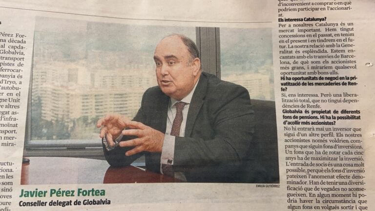 En una entrevista a La Vanguardia al conseller delegat de Globalvia, Javier Pérez Fortea afirma i sense amagar-se que “Estan encantats amb els tramvies de Barcelona” en referència a la concessió que tenen d’explotació del tramvia ampliada fins l’ant 2032 que els garanteix molt i molts diners sense cap risc, tal i com estableix l’informe de la Sindicatura de Comptes.