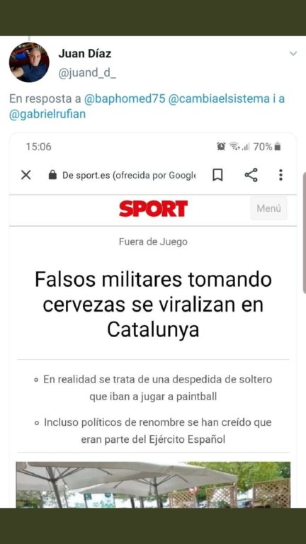 També, diferents trolls a les xarxes, principalment nacionalistes espanyols, van intoxicar i malparlar de la notícia i sobre aquest mitjà. Una reacció típica fruit de la ràbia i impotència sobre una notícia vergonyant i que torna a dilapidar la imatge d’Espanya, a la qual defensen sense escrúpols.