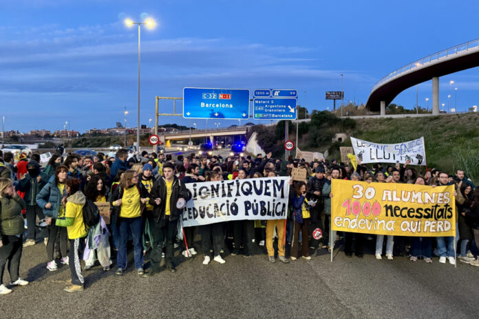 Més d’un centenar de professors en vaga han tallat aquest dimecres cap a dos quarts de vuit del matí la C-32 a Mataró, en direcció Barcelona i en plena hora punta. El tall ha durat mitja hora, fins que la policia ha encapsulat els manifestats per treure’ls de la via. Abans, un ampli dispositiu havia intentat sense èxit evitar l’acció, amb vehicles antiavalots desplegats a tots els accessos. Durant el tall, s’han viscut moments de tensió amb cops de porra inclosos. Després d’això, una marea groga de mestres ha recorregut la ciutat fins la carretera N-II, que també ha quedat tallada durant mitja hora, entre dos quarts d’onze i les onze. Les protestes s’han allargat prop de cinc hores i han acabat davant els Serveis Territorials d’Educació.