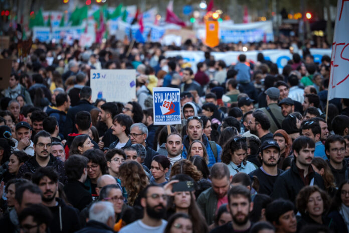 Els sindicats de llogateres de tot l’Estat han fet una crida aquest dimarts a “omplir els carrers” en una manifestació el dissabte 5 d’abril per exigir que “s’abaixin els lloguers” i que “l’habitatge deixi de ser per especular”. La mobilització està convocada de forma simultània a diferents ciutats de l’Estat, entre elles Barcelona, on serà a les 18 hores a la plaça d’Espanya. El Sindicat de Llogateres preveu que “milers de persones” arribin a la capital catalana en columnes des de diferents punts del territori. La manifestació està convocada sota el lema ‘Abaixem els lloguers, acabem amb el negoci de l’habitatge’.