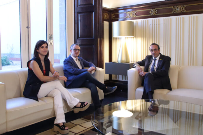 ERC ha traslladat al president del Parlament, Josep Rull, que han arribat a un acord amb el PSC per investir el seu candidat, Salvador Illa. Així li ho han comunicat durant la ronda de consultes que Rull està celebrant amb tots els grups parlamentaris. Aquest és el pas previ per convocar un debat d’investidura. A la reunió hi han participat el president del grup parlamentari, Josep Maria Jové, i la portaveu parlamentària, Marta Vilalta. Durant la trobada, que ha durat mitja hora, Jové i Vilalta també han informat Rull que els agradaria celebrar un eventual debat d’investidura al Parlament els propers dies.