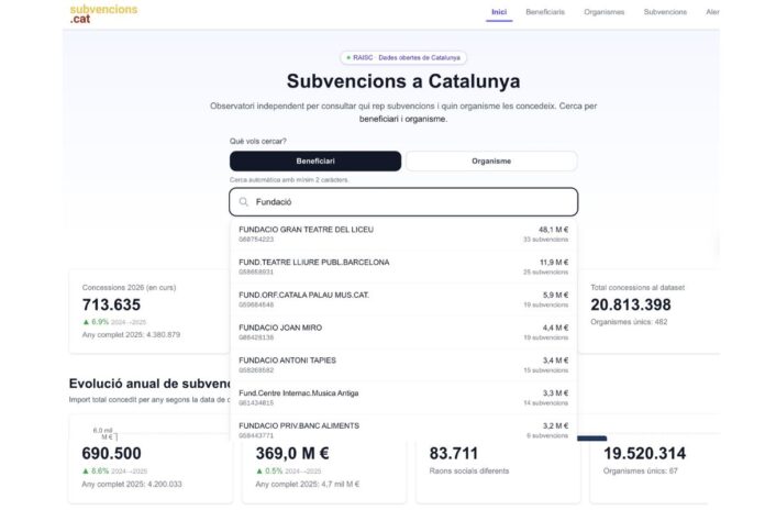 L’èxit de la pàgina web ‘subvencions.cat’, creada per l’informàtic Gerard Giménez Adsuar, que revelava les subvencions atorgades per exemple a entitats que ignoren el català, com és el cas de l’entitat presidida per Brigitte Vasallo (la qual va rebre quasi 3 milions d’euros en subvencions per part de la Generalitat i l’Ajuntament de Barcelona), ha posat nerviós el Govern, que ràpidament va afanyar-se a blocar i censurar l’accés a la base de dades que alimentava l’eina. Davant les crítiques, la base de dades ha tornat a estar operativa; això sí, s’han eliminat més d’un milió de dades que abans eren accessibles. Es tracta de dades, la majoria relacionades amb les subvencions atorgades pels ajuntaments, que, si bé continuen sent públiques, ara només poden trobar-se en ‘datasets’ fora de les pàgines web dels consistoris. En paraules del mateix Giménez, “bàsicament han complicat més la feina”.