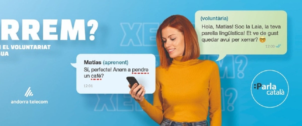 La campanya actual girarà al voltant de la Laia i en Matías, una parella lingüística de ficció que parlaran per Whatsapp per quedar un cop de setmana per conversar. Ja fa 18 anys que el voluntariat per la llengua es va implementar a Andorra i n’han format part més de 1.200 parelles lingüístiques. L’objectiu d’aquest voluntariat és que un catalanoparlant ajudi a un no-catalanoparlant a iniciar-se i perfeccionar l’ús de la llengua autòctona.
