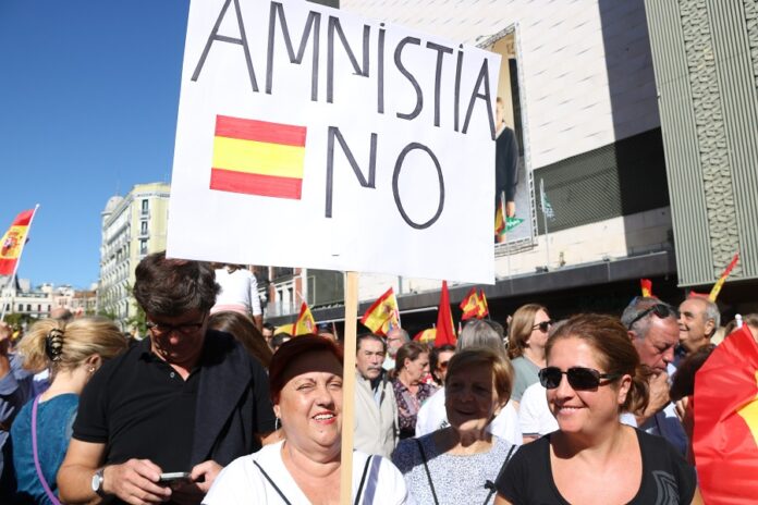 El president del PP, Alberto Núñez Feijóo, ha denunciat en un acte multitudinari a Madrid que l’amnistia és una “indignitat” i que suposa un “frau”. “Espanya no va votar democràticament que visquem aquesta tessitura”, ha afirmat Feijóo aquest diumenge al migdia davant de milers de persones i de dirigents i exdirigents del partit. Segons Feijóo, concedir l’amnistia als responsables del procés implica atacar la “igualtat” de la ciutadania de l’estat espanyol sense que hi hagi “consentiment” de la majoria. “La llei ha de ser igual per a tots començant pels polítics”, ha argumentat, perquè “si no són iguals és una tupinada”. El líder del PP ha acusat el líder socialista, Pedro Sánchez, de ser el “responsable” i al PSOE de ser “còmplice”.