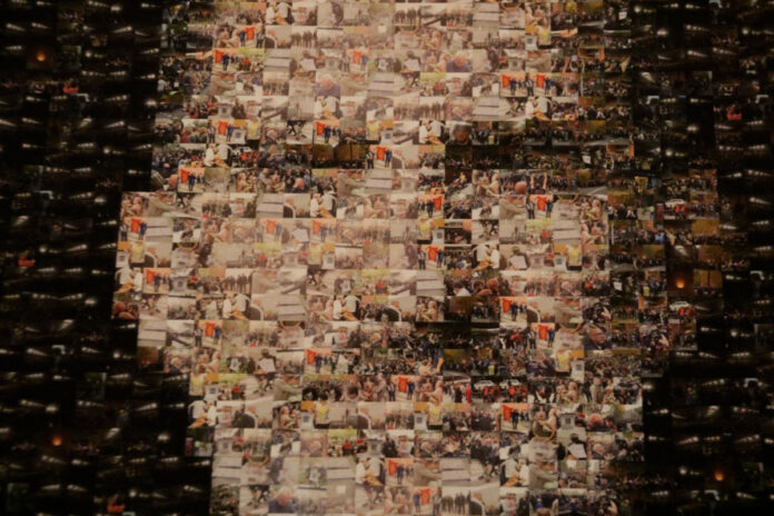 Una estona abans de començar el ple, l’alcalde Lluc Salellas ha convocat els mitjans per explicar-los de quina manera ha complert la sentència. El retrat de Felip VI s’ha penjat aquest dilluns per primer cop a la sala de plens, en una paret lateral on s’asseu el públic. Però per complir la sentència, l’alcalde ha optat per una fórmula imaginativa, que de retruc també vol fer palesa el rebuig de la ciutat a la monarquia: perquè la imatge del monarca s’ha construït a partir d’un mosaic de fotografies de l’1-O, que han cedit diversos fotògrafs de la ciutat.