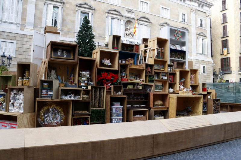 Com cada Nadal, el pessebre de la plaça de Sant Jaume genera controvèrsia i aquest any representa un traster amb ornaments i records nadalencs en caixes de diverses mides, que no ha deixat ningú indiferent.