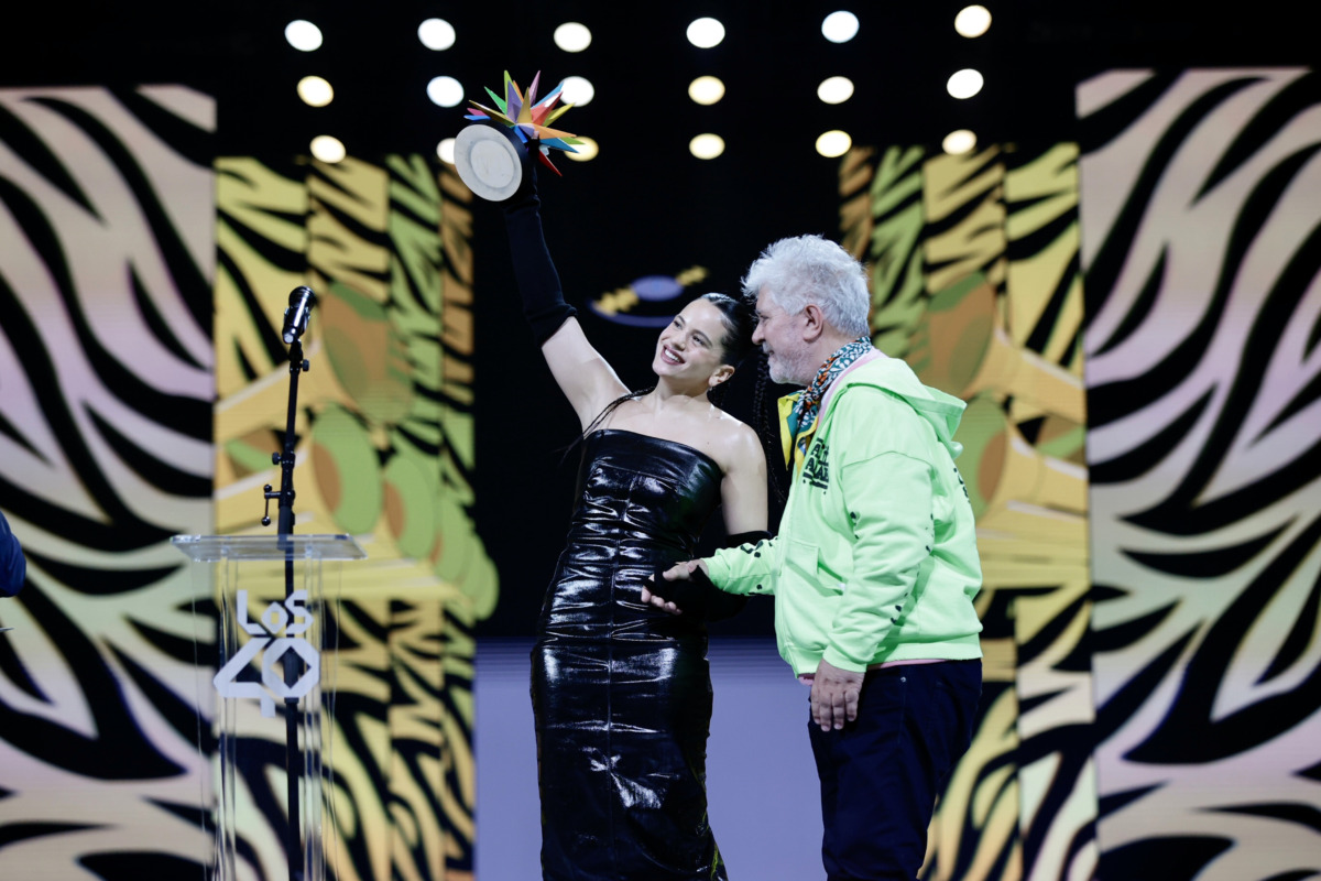 Rosalia ha estat la gran triomfadora a la gala de Los40 Music Awards 2022 amb tres dels principals premis: millor àlbum per ‘Motomami’, millor gira per ‘Motomami World Tour’ i un Golden Awards, que ha rebut de mans del director de cinema Pedro Almodóvar.