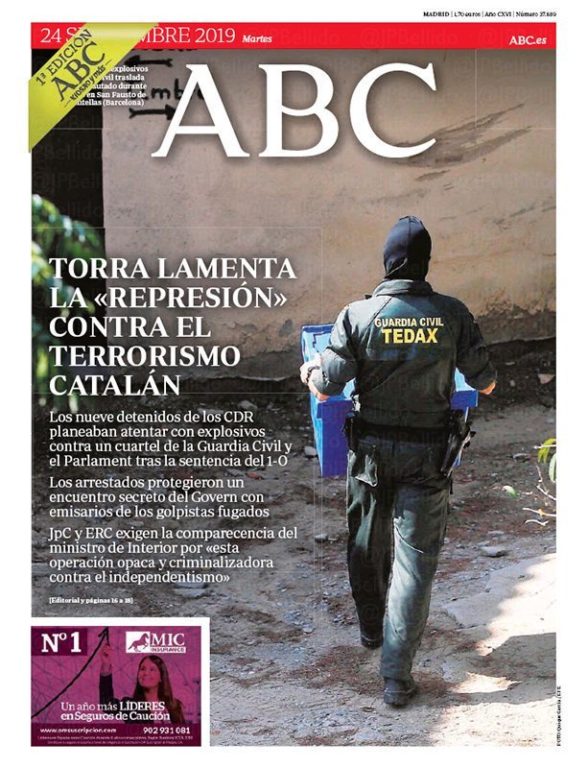 ‘ABC’: “Torra lamenta la “represión” contra el terrorismo catalán”
