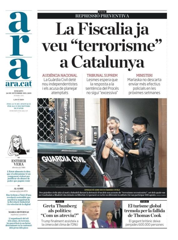 ‘Ara’: “La Fiscalia ja veu “terrorisme” a Catalunya”