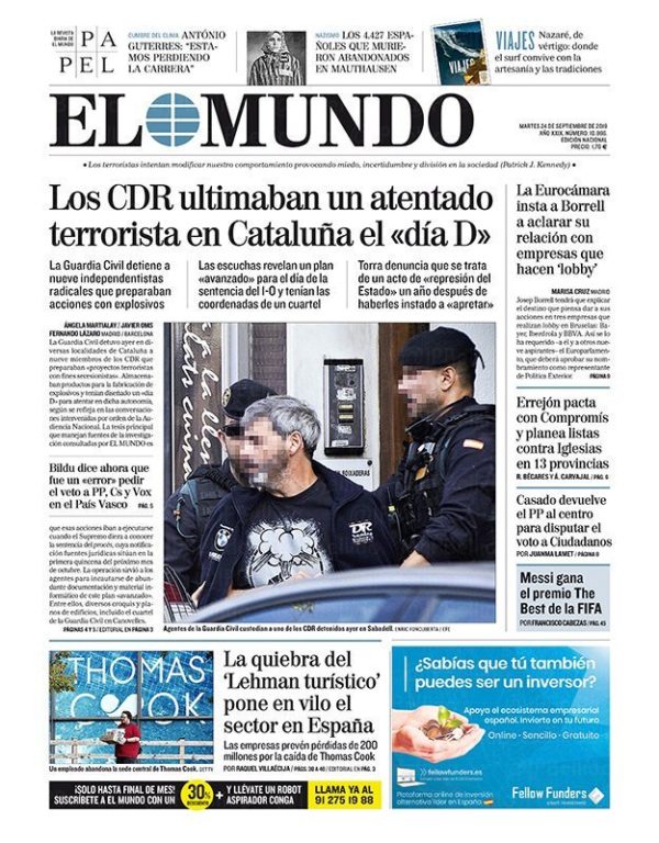 ‘El Mundo’: “Los CDR ultimaban un atentado terrorista en Cataluña el “día D””
