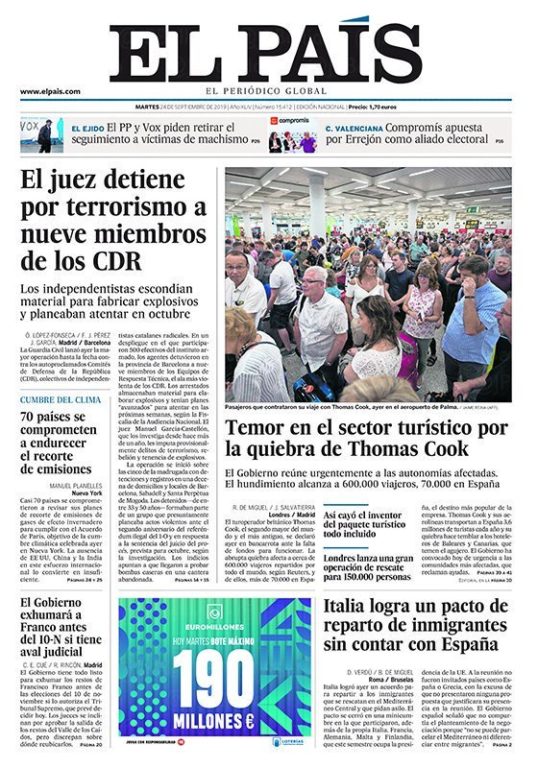 ‘El País’: “El juez detiene por terrorismo a nueve miembros de los CDR”