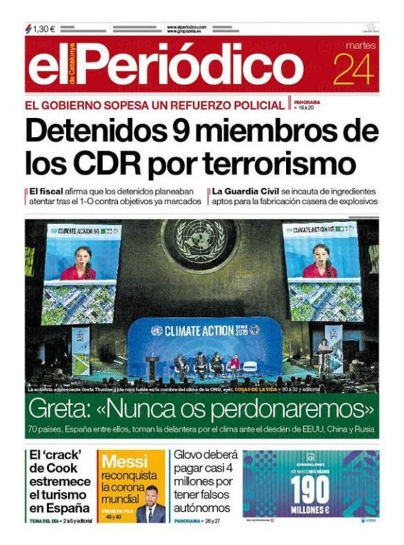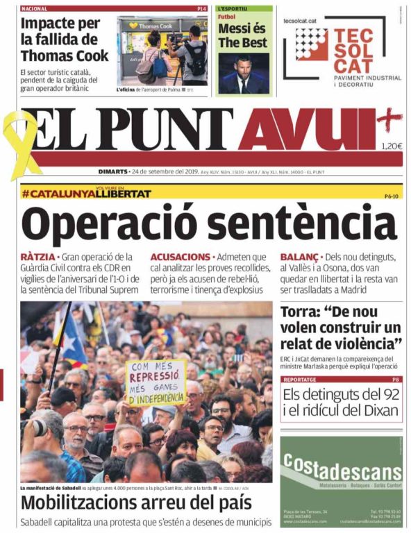 ‘El Periódico’: “Detinguts nou membres dels CDR per terrorisme”