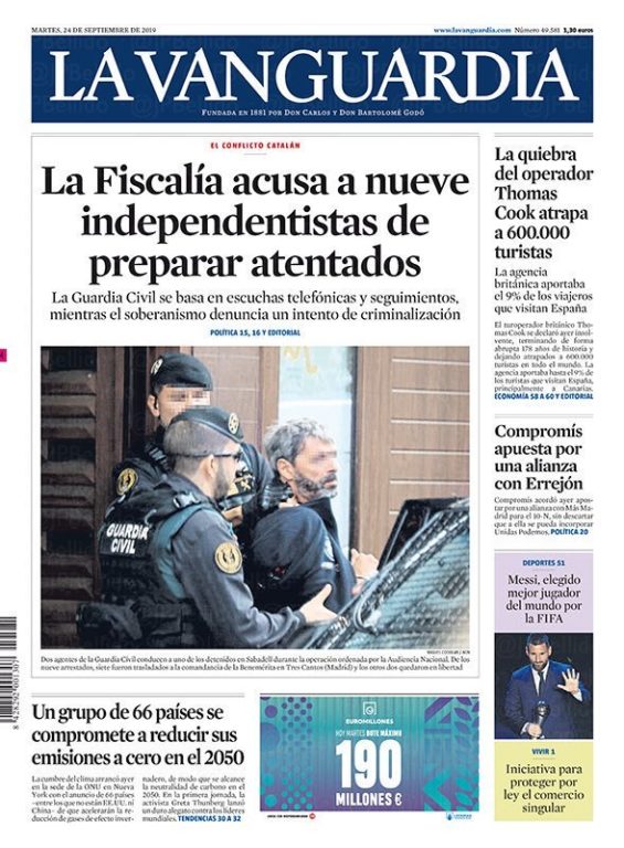 ‘La Vanguardia’: “La Fiscalia acusa nou independentistes de preparar atemptats”