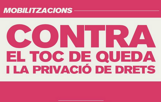 La CUP i altres organitzacions de l’esquerra independentista han convocat mobilitzacions per dilluns contra el toc de queda i la “privació de drets”. La convocatòria que estan distribuint per xarxes situa concentracions a les vuit del vespre a “diversos punts dels Països Catalans” que encara no concreten. Els cupaires critiquen que la solució passi ara per “policia al carrer per vigilar els horaris” en comptes d’enfortir la sanitat, l’educació pública o suspendre els lloguers. La convocatòria la signen la CUP, Alerta Solidària, Arran, COS, Endavant i el SEPC. Tot plegat, després que el Govern hagi informat que el toc de queda a Catalunya serà entre les 22 hores i les 6 hores i que entrarà en vigor aquest diumenge a la nit.