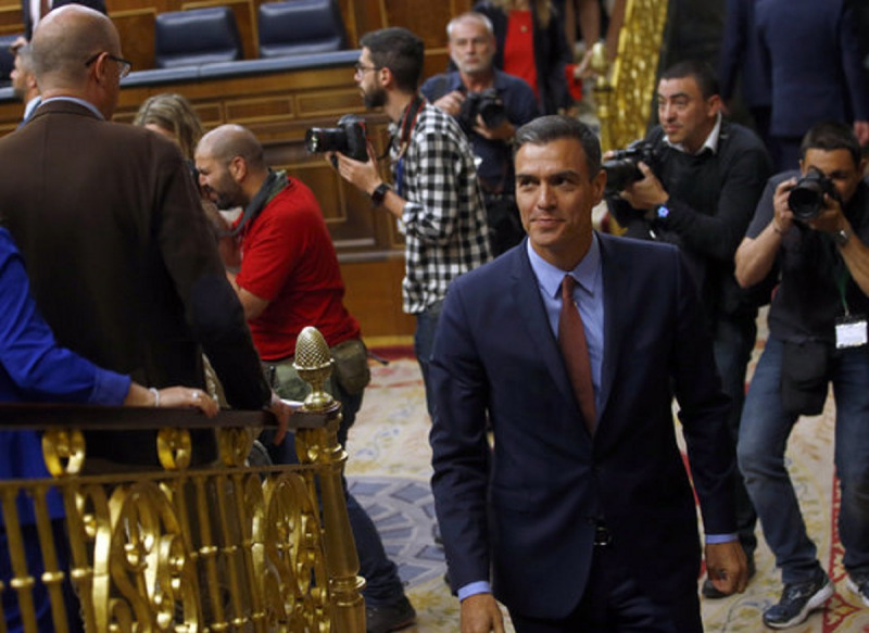 El candidat a la presidència del govern espanyol en el ple d’investidura que comença aquest dilluns al Congrés, Pedro Sánchez, ha passat de puntetes sobre la crisi entre Catalunya i Espanya a la primera part del seu discurs. Mentre parlava de la necessitat de “protegir Europa i els seus ideals” amb una “major integració”, ha lloat que la UE sigui on s’han superat els “egoismes nacionals” i les “rivalitats i tensions internes”. “Quin sentit té fomentar la desunió i al divisió dins d’Espanya quan necessitem més Unió Europea? Quin sentit té aixecar fronteres internes quan cal enderrocar fronteres externes?. És anar contra la història”, ha sentenciat, tot afegint que “la superació de les tensions territorials” dins l’Estat espanyol arribarà amb “la invocació de la llei i la Constitució, i de la seva aplicació, sense dubte necessària”. Tot i així, ha matisat que “no només amb això”, i ha plantejat que la solució es derivi també “d’un projecte col·lectiu de regeneració nacional, de progrés i d’inspiració europeista”.