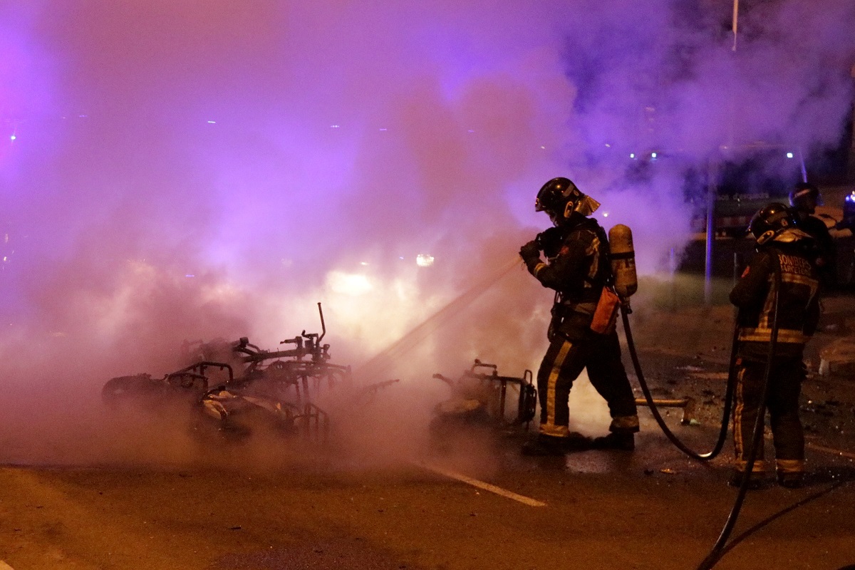 La majoria de joves ja havien començat a marxar cap a casa des d’aproximadament les cinc de la matinada. Pels volts de les sis, un reduït grup de violents ha cremat diverses motocicletes i senyals de trànsit que han arrencat del terra. També han trencat portes i finestres de locals del passeig marítim i han fet saquejos en almenys un restaurant.