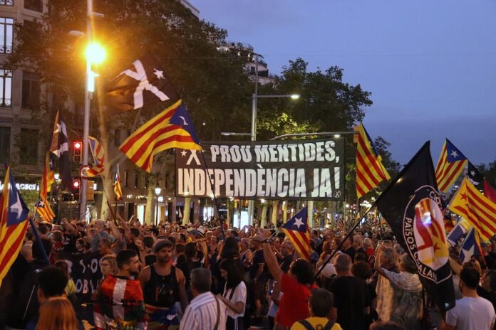 Un cop s’han ajuntat les dues manifestacions, una sola columna independentista ha avançat per la Diagonal i Rosselló fins al passeig de Sant Joan, tot i que ha perdut seguidors fins als 1.800 A partir d’allà només ha faltat pujar fins a la Travessera de Gràcia.