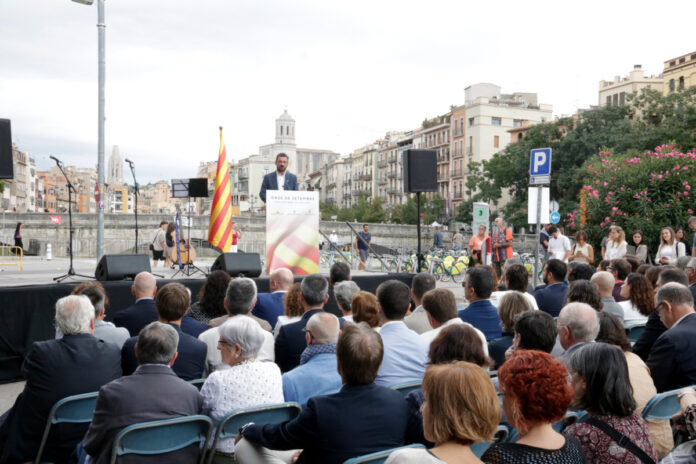 Unes 150 persones entre públic i autoritats han seguit l’acte institucional que s’ha fet per la Diada a Girona aquest dijous. Un acte centrat en la defensa del català, després de la decisió del TSJC d’aquest dimecres. Tant l’alcalde de Girona, Lluc Salellas, com la consellera de Territori i portaveu del Govern, Sílvia Paneque, com el president de la Diputació, han reivindicat la importància de defensar el català “a tots els àmbits”.