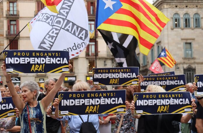 L’Assamblea Nacional Catalana (ANC) s’ha manifestat a la plaça Sant Jaume per reclamar als partits independentistes que no investeixin a l’actual president del govern espanyol, Pedro Sánchez. Així ho ha demanat la presidenta de l’entitat, Dolors Feliu, que també ha dit que aquesta negociació “ha d’incloure la independència”. “Si no, eleccions, les unes darrere les altres”, ha sentenciat. En la mateixa línia, la líder de l’entitat ha lamentat l’ordre de detenció internacional de Puigdemont i Comín i la detenció de l’exconsellera Clara Ponsatí aquest dilluns a Barcelona. “Sempre fan el mateix, repressió”, ha afegit. A la manifestació s’hi han concentrat centenars de persones sota els clams de “govern dimissió” i “bloqueig i independència ja”.