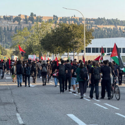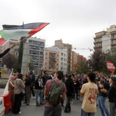 Finalment, a Lleida, desenes de persones s’han mobilitzat contra els atacs d’Israel a Palestina amb diversos piquets i marxes. Des de primera hora del matí un piquet encapçalat pel Comitè en Solidaritat amb Palestina de Lleida, amb el suport de la Intersindical, la CNT, IAC i la CGT, recorre comerços i institucions als quals reclama trencar relacions amb Israel. Manifestants en vaga han intentat bloquejar l’accés al Carrefour, han entrat al Rectorat de la Universitat de Lleida i s’han concentrat al migdia a la plaça de Ricard Viñes abans de la manifestació que tindrà lloc a les 19.00. Per la seva banda, a mig matí la UGT i CCOO han reunit una setantena de persones a la plaça Paeria. Els dos sindicats majoritaris promouen aturades de dues hores a la feina.