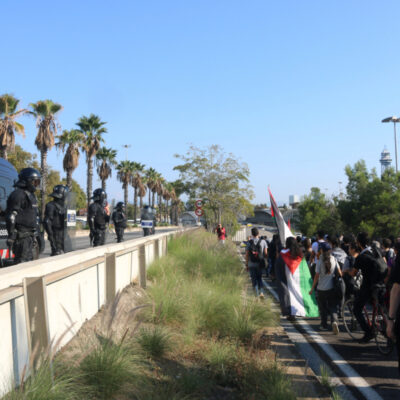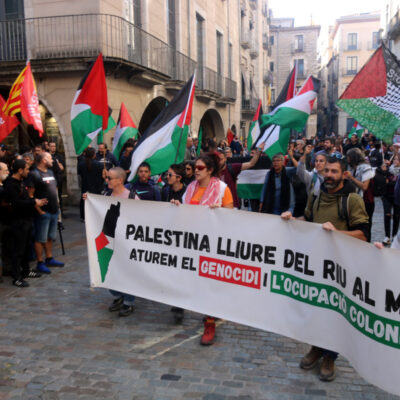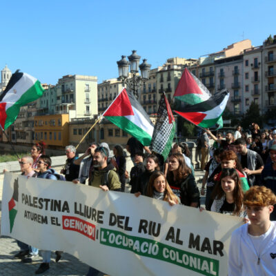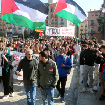 A Girona, la protesta ha començat a caminar des de la plaça del Vi, on diversos sindicats com la IAC i els estudiants havien convocat un piquet central. Piquets davant del Carrefour, a les aules de la UdG i dues protestes al centre de la ciutat. Una de les quals, ha derivat en una manifestació que ha acabat tallant les vies del tren durant mitja hora. La vaga general -o l’aturada parcial- convocada aquest 15-O en suport a Palestina s’ha deixat notar de diferent manera, en funció dels sindicats que hi havia darrere cada protesta.