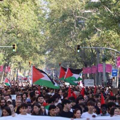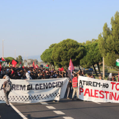A Barcelona, diverses persones han tallat a primera hora la Ronda Litoral; també a Mercabana, la Zona Franca i la Ciutat de la Justícia s’han viscut piquets de manifestants convocats per CGT, la Intersindical i la IAC. Aquests manifestants han iniciat una marxa cívica cap a les 9.30 hores i s’han unit al piquet de la Ciutat de la Justícia per a bloquejar els accessos propers al Port de Barcelona i el Passeig de la Zona Franca. Un cop allà, han desfilat plegats per la ronda, en sentit Besòs, fins a la capital catalana, on han arribat per la zona portuària. L’ambient de la protesta ha estat pacífic i festiu. Segons relaten els enviats de l’ACN, en l’itinerari cap a plaça Universitat, a la zona portuària, el Parc de Bombers de Montjuïc ha aplaudit el pas dels manifestants. Dos vehicles de la flota han encès els llums i les sirenes. Un gest que ha motivat que l’aturada de la mobilització davant de l’equipament. Amb l’arribada a Barcelona, especialment per l’avinguda Paral·lel, diversos integrants de la comitiva han fet pintades contra negocis que diuen “financen el genocidi” que comet Israel sobre la població de Palestina.