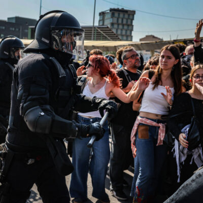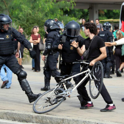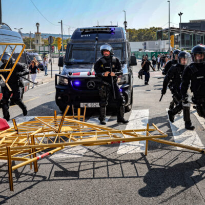 D’altra banda, i encara a Barcelona, un altre grup de manifestants ha iniciat la protesta tallant la Gran Via i després han pujat pel carrer Entença en presència de Guàrdia Urbana i Mossos d’Esquadra. Han passat pel carrer Tarragona fins que han arribat a l’estació de Sants, on a la tarda està convocada una nova manifestació. Tanmateix, s’ha produit una situació de tensió entre la policia i els manifestants, quan la marxa ha arribat a la plaça Joan Peiró, darrere de l’estació, i un grup ha atacat un restaurant de menjar ràpid, fet que ha activat els furgons dels antiavalots. Els joves els han llençat objectes i tanques d’una obra propera, i els vehicles policials han hagut de retrocedir. Els manifestants han intentat irrompre a l’estació i han creuat contenidors i tanques per dificultar el pas dels furgons, que finalment han aconseguit dispersar el gruix de joves.