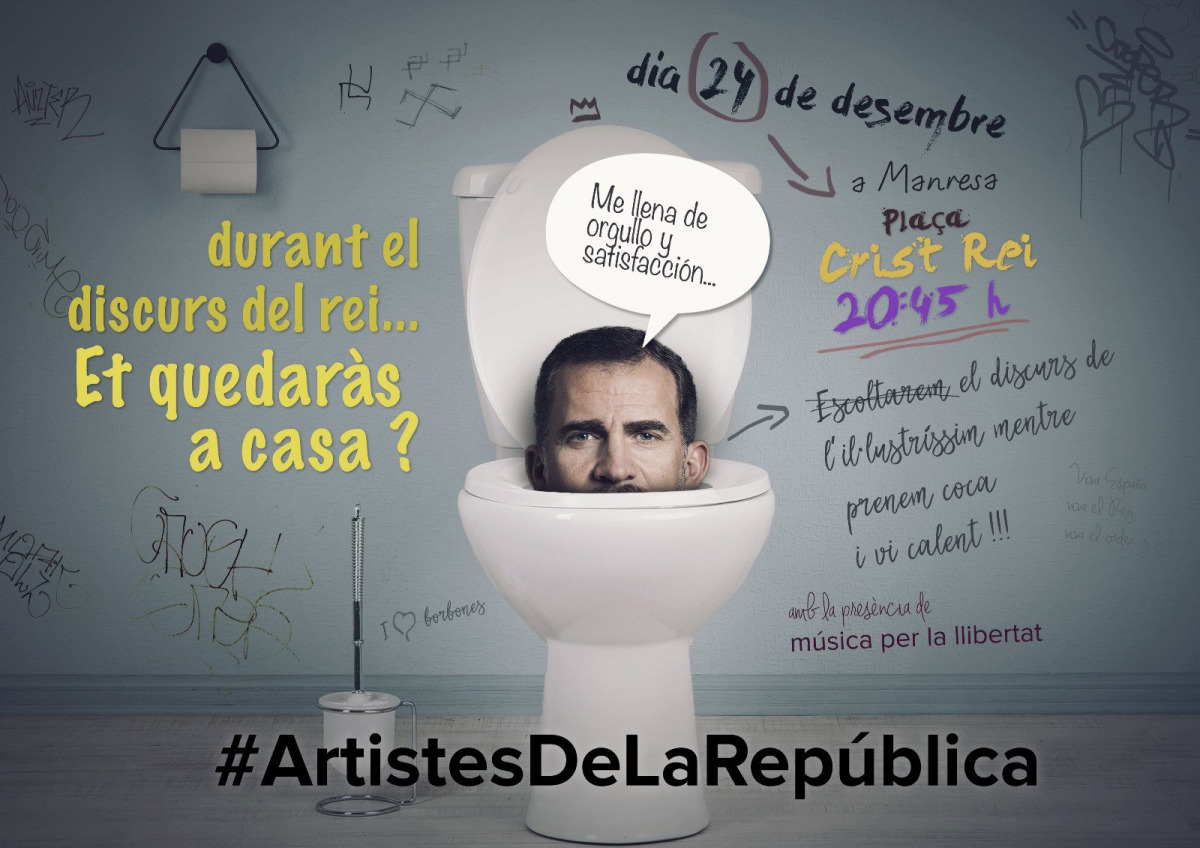 Artistes de la República farà una nova acció aquest 24 de desembre a Manresa. Es tracta de la instal·lació de diversos vàters a Manresa per seguir el discurs de Nadal del monarca de la casa de Borbó. Marc Sellarès, artista i membre del col·lectiu ha explicat que dins dels sanitaris s’hi col·locaran ràdios que emetran les paraules de Felip VI. Aquesta acció vol mostrar el rebuig a la monarquia “hereva del franquisme i a l’estat espanyol que no respecta els drets fonamentals”, en paraules de Sellarès. L’acció també vol: “la llibertat dels polítics que són a la presó, a l’exili, i la llibertat d’expressió”.