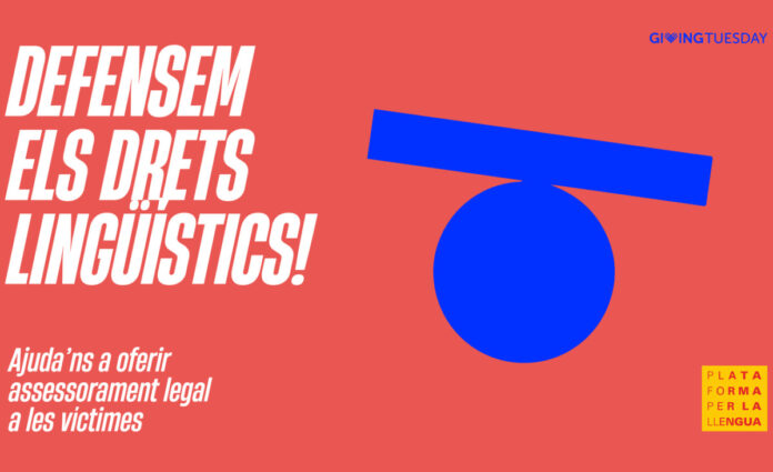 Plataforma per la Llengua s’afegeix per sisè any consecutiu al #GivingTuesday, el moviment global que fomenta les accions altruistes després del Black Friday. Aquest any, se celebra internacionalment el 28 de novembre i l’entitat proposa que la ciutadania s’hi sumi fent donacions per ampliar el servei d’assessorament legal a aquelles persones que han patit discriminacions lingüístiques.