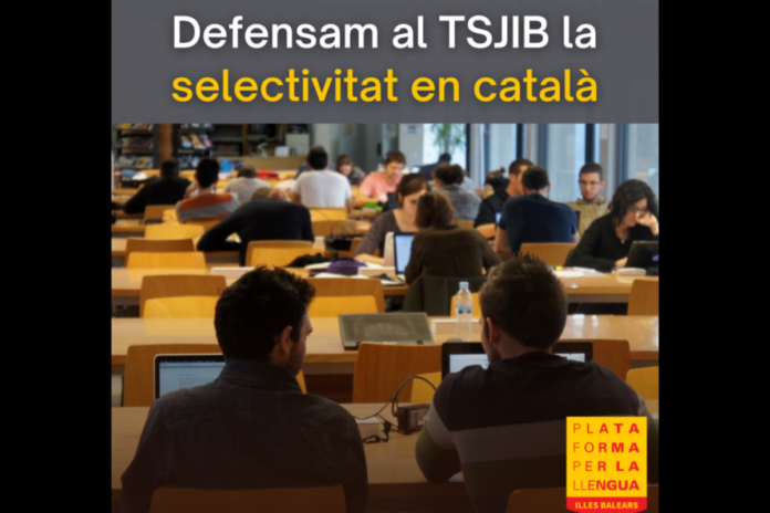 Plataforma per la Llengua s’ha personat al Tribunal Superior de Justícia de les Illes Balears (TSJIB) contra la demanda de l’associació espanyolista PLIS Educación que exigeix deixar de prioritzar el català als enunciats de la selectivitat. De fet, enguany la Universitat de les Illes Balears (UIB) ja ha repartit els exàmens de Selectivitat (PBAU) tant en castellà com en català.