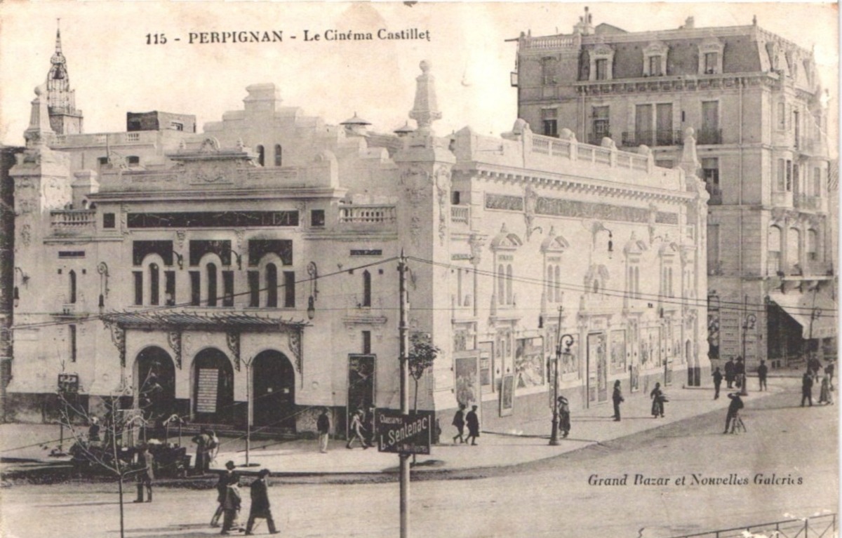 El cinema Le Castillet és un emblemàtic edifici situat, com el seu nom indica, ben a prop d’El Castellet de Perpinyà, fortalesa que feia de porta d’entrada a la ciutat quan aquesta era emmurallada. La sala de cinema va ser edificada justament aprofitant el sòl que havia quedat lliure amb l’enderrocament de les muralles. El promotor d’aquest negoci va ser Joan Font, un Barceloní que ja havia aixecat algun cinema a Barcelona i que ara es disposava a impulsar el mateix tipus de negoci a Perpinyà. L’edifici va ser projectat per l’arquitecte savoià Eugène Montès i les decoracions van ser encarregades a l’escultor de Tolosa Alexandre Guénot. L’arquitectura de l’edifici, inspirada en la dels teatres del segle XIX i amb elements modernistes incorporats, va ser polèmica: algunes de les crítiques en van sortir a la premsa el qualificaven com “l’obra mestra del mal gust espanyol” -fent referència a l’origen transfronterer del promotor- i el comparaven amb una “mesquita” i un “manicomi”. Va ser el primer cinema de la ciutat, amb 1.100 seients, una pantalla de tres metres d’ampla i oferia, a part de cinema, concerts musicals i operetes. Actualment és el cinema més antic en funcionament de tot l’estat francès i va ser declarat monument històric l’any 1997.