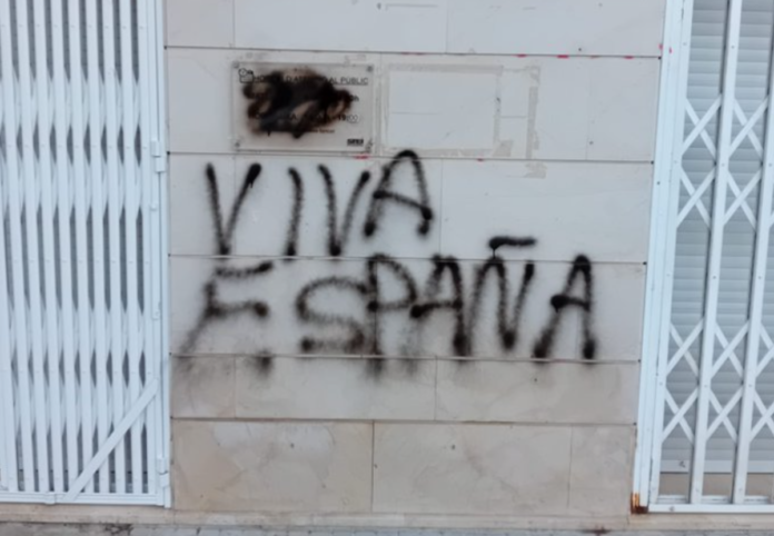 La seu central de l’STEI Intersindical a Palma ha estat atacada la matinada d’aquest dimarts amb pintades i proclames espanyolistes a la façana on es podia llegir “Viva Espanya”. El sindicat ho ha denunciat en un missatge a X (Twitter), on ha assenyalat que l’acció vandàlica s’ha produït la nit després de fer declaracions crítiques amb l’acord de PP i Vox “que vol fer de l’escola un camp de batalla contra la nostra identitat”.
