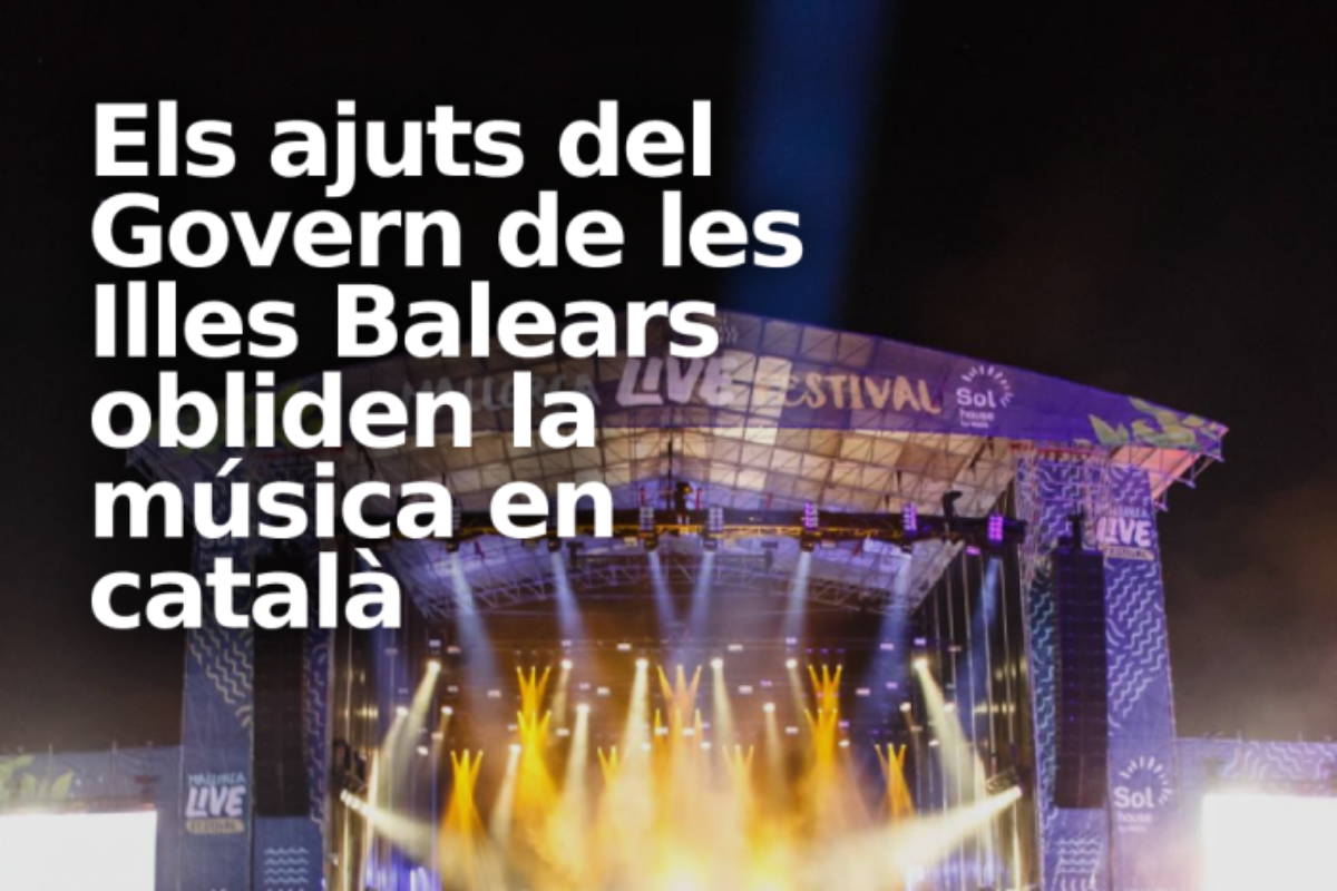 Plataforma per la Llengua denuncia que els ajuts del Govern de les Illes Balears als festivals de música obliden el català. L’entitat reclama a l’Institut d’Estudis Baleàrics (IEB) que obligui els organitzadors de festivals de música a programar un 50% de música en català per acollir-se a les subvencions, tal com va prometre el PSIB.