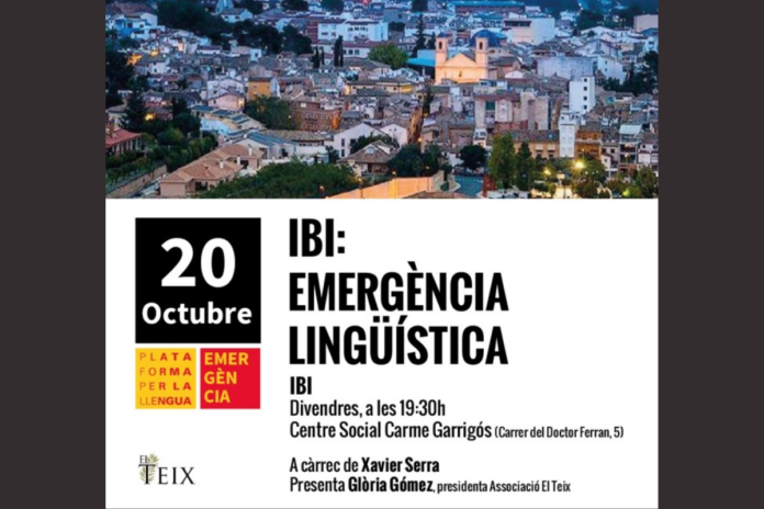 Plataforma per la Llengua aterra a Ibi (Alacant) amb el seu cicle de conferències sobre l’emergència lingüística per abordar la situació de retrocés que pateix el valencià. La xerrada, que tindrà lloc al Centre Social Carme Garrigós a les 19:30 h, anirà a càrrec del filòsof i escriptor Xavier Serra, i comptarà amb una introducció de Glòria Gómez, presidenta de l’Associació Cultural d’Ibi, El Teix.