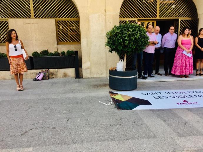 La imatge és davant de l’ajuntament de Sant Joan i la trista protagonista és Gema Aleman. La regidora de Vox va decidir apartar-se de la resta de la corporació municipal per deixar palès el seu rebuig a la llei actual i reivindicant un tractament de la legislació des del punt de vista intrafamiliar.