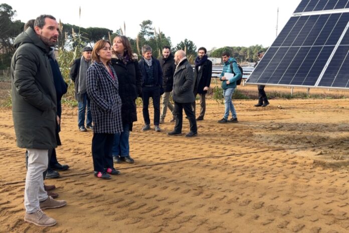 La consellera de Territori, Habitatge i Transició Ecològica, Sílvia Paneque, ha visitat la primera planta fotovoltaica titularitat de l’empresa pública L’Energètica, que s’ubica a Vidreres (Selva). El parc, de 3,4 megawatts pic (MWp) de potència, s’ha adquirit amb un procés de crida pública i ha suposat una inversió de 2,9 milions d’euros. “El Govern està compromès a impulsar la transició energètica i el de Vidreres ha de ser el primer de molts”, ha dit la consellera. El parc, instal·lat en una antiga pista de motocròs abandonada, és el més gran de comarques gironines amb 4.872 panells fotovoltaics que abastiran la planta dessalinitzadora de la Tordera. La intenció del Govern és ara la de naturalitzar-lo per fomentar-hi la biodiversitat.
