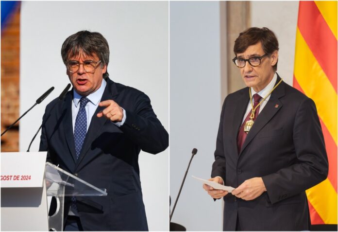 8 d’agost Jornada amb doble protagonisme. És el dia fixat pel Parlament per celebrar el debat d’investidura de Salvador Illa. L’expresident Carles Puigdemont havia promès durant la campanya electoral que tornaria a Catalunya aquell dia per assistir-hi i, a primera hora del matí, apareix en un acte a l’Arc de Triomf de Barcelona. Després d’un breu discurs, Puigdemont desapareix, es generen unes hores de dubtes d’on està i els Mossos activen l’operatiu ‘gàbia’. Finalment, torna a Waterloo, fet que provoca que el Tribunal Suprem demani explicacions als Mossos sobre quin dispositiu van establir per detenir-lo. Mentrestant, el Parlament celebra el ple i investeix Salvador Illa com a president de la Generalitat després que el PSC tanqui acords amb ERC, que inclou el finançament singular, i els Comuns, amb polítiques d’habitatge i mesures per dissuadir projectes com el Hard Rock. Dies després, Illa pren possessió del càrrec i nomena el nou executiu, el primer format només pels socialistes.