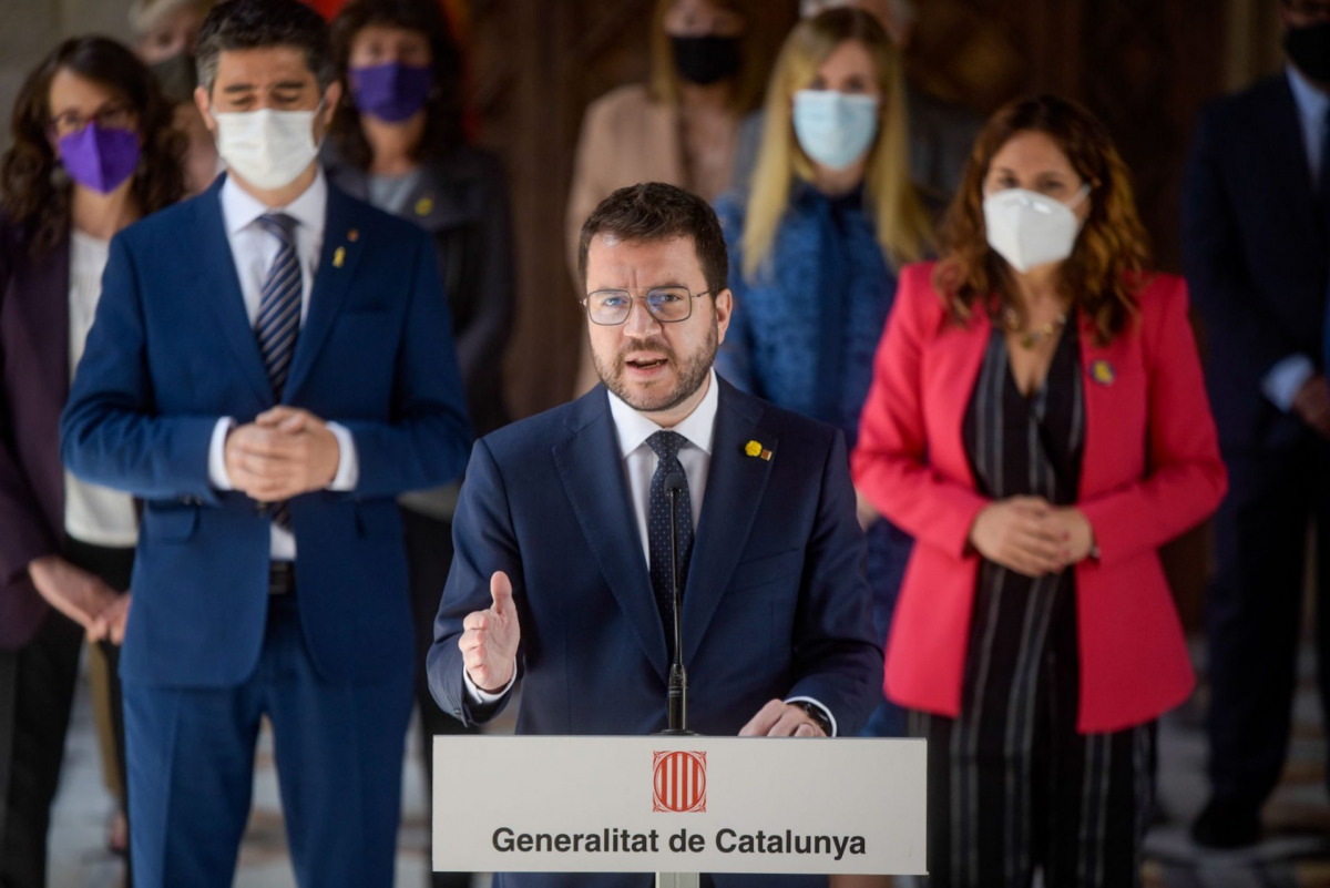 El president de la Generalitat, Pere Aragonès, compareix acompanyat dels nous consellers i conselleres del #Govern, després d'encapçalar la primera reunió del Consell Executiu https://t.co/OtOSjLa15o