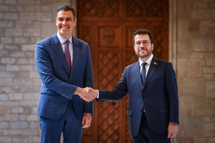 Els presidents Pere Aragonès i Pedro Sánchez han tancat 5 pactes durant la reunió que han mantingut aquest dijous al Palau de la Generalitat, entre ells la primera reunió de la taula de diàleg, que Sánchez va enterrar l’any passat, l’avenç del traspàs de Rodalies, o el traspàs de la gestió de l’Ingrés Mínim Vital (IMV).