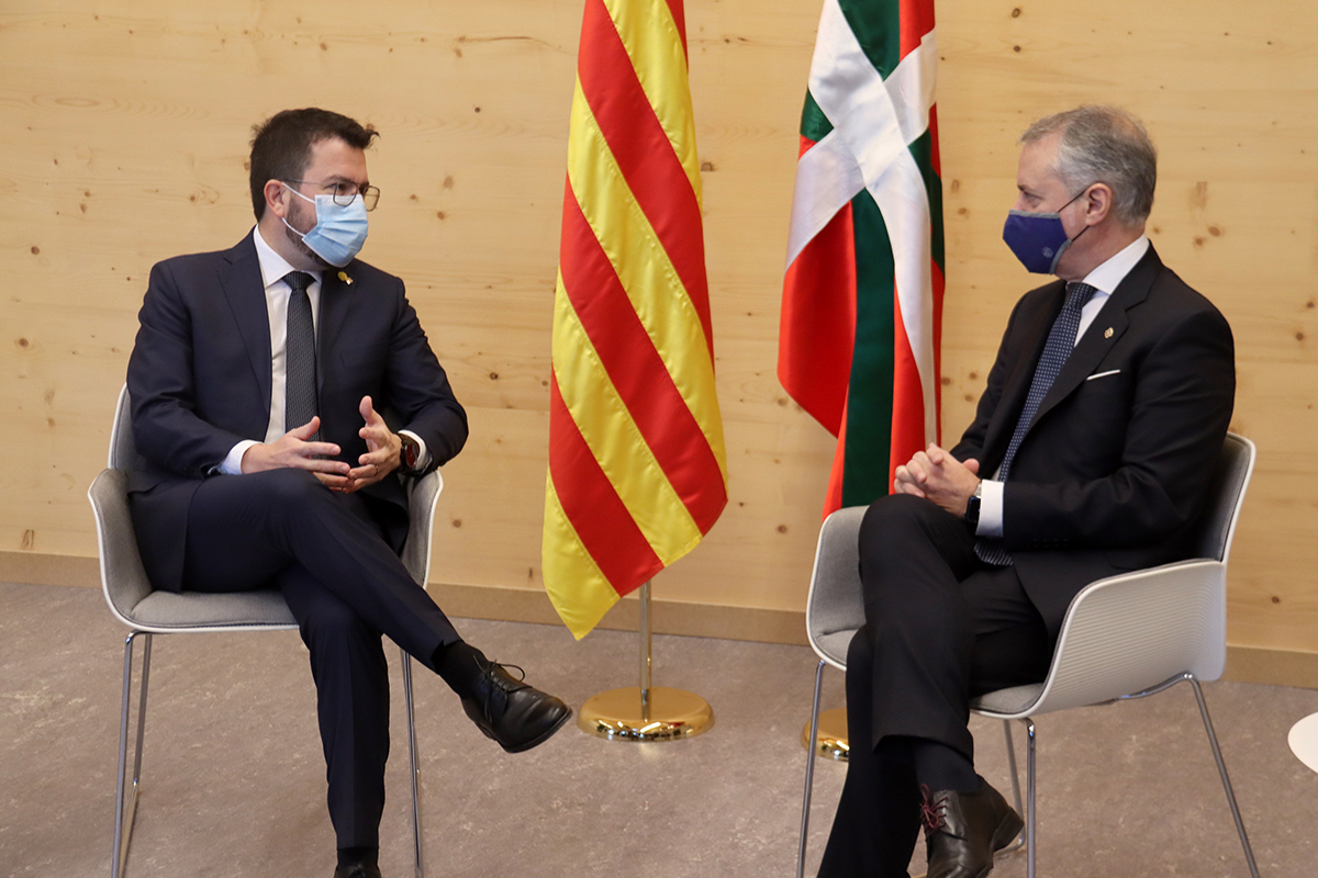 El president de la Generalitat, Pere Aragonès, i el lehendakari, Íñigo Urkullu, han mantingut aquest dilluns a Alp la seva primera reunió bilateral.