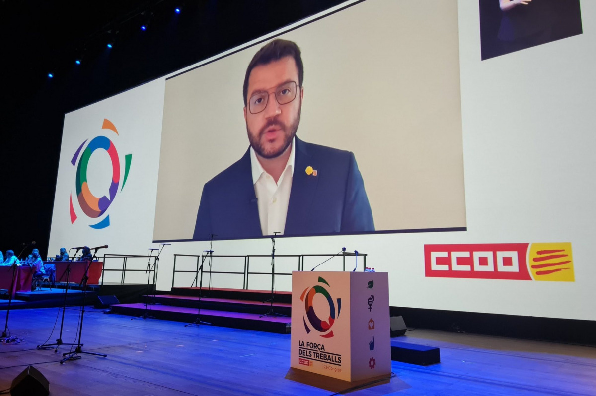 Pere Aragonès, ha reivindicat el paper els sindicats i els agents socials per “enfortir els serveis públics” i contribuir a “la resolució del conflicte polític de Catalunya amb l’Estat”. Durant la tercera jornada del congrés de CCOO a Catalunya, celebrada aquest diumenge a l’auditori del Fòrum de Barcelona, Aragonès ha comentat que el diàleg social és “una manera d’entendre la política econòmica i social” i ha subratllat que el paper dels sindicats és “fonamental” per “avançar cap a una estructura econòmica molt més resilient”. En la seva intervenció –en format telemàtic- el president de la Generalitat també ha volgut traslladar el “compromís” del Govern per donar al treball “el valor que mereix”.