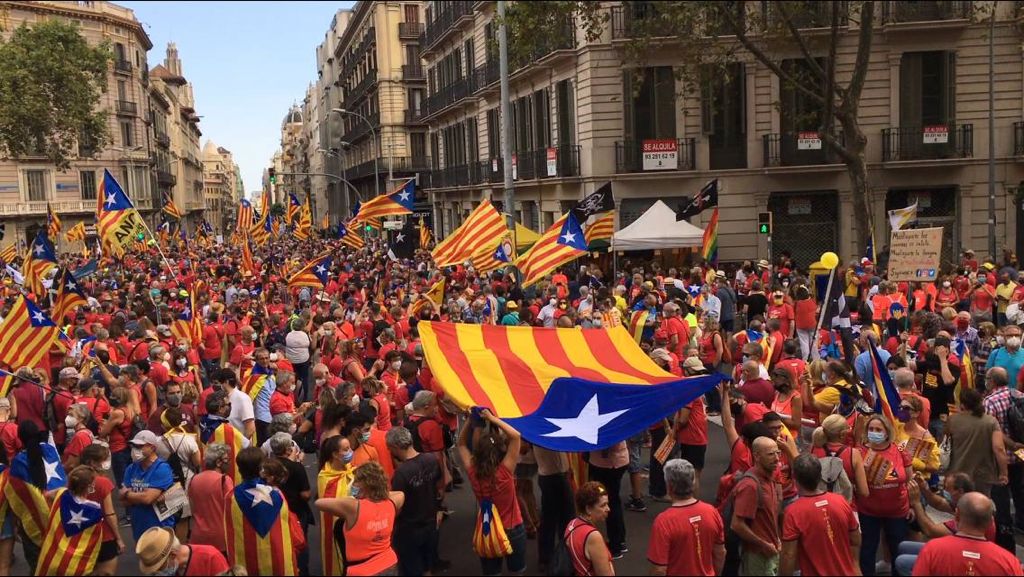 La manifestació de la Diada, sota el lema ‘Lluitem i guanyem la independència’, ja avança per la Via Laietana de Barcelona. La protesta, organitzada per l’ANC i amb el suport d’Òmnium Cultural i l’AMI, és la primera des del 2017 en què poden participar els presos polítics, indultats al juny. A més, també és la primera en moviment des de l’esclat de la pandèmia. Milers de persones ocupen la part alta de Via Laietana, Urquinaona i pujant cap al carrer Pau Claris amb estelades i cartells exigint la independència. La marxa va cap a l’Estació de França, on es preveuen els parlaments, amb crits com ‘Independència’, ‘1-O, ni oblit ni perdó’, i cartells amb el missatge ‘Hem guanyat’ o ‘Exigim la independència’.