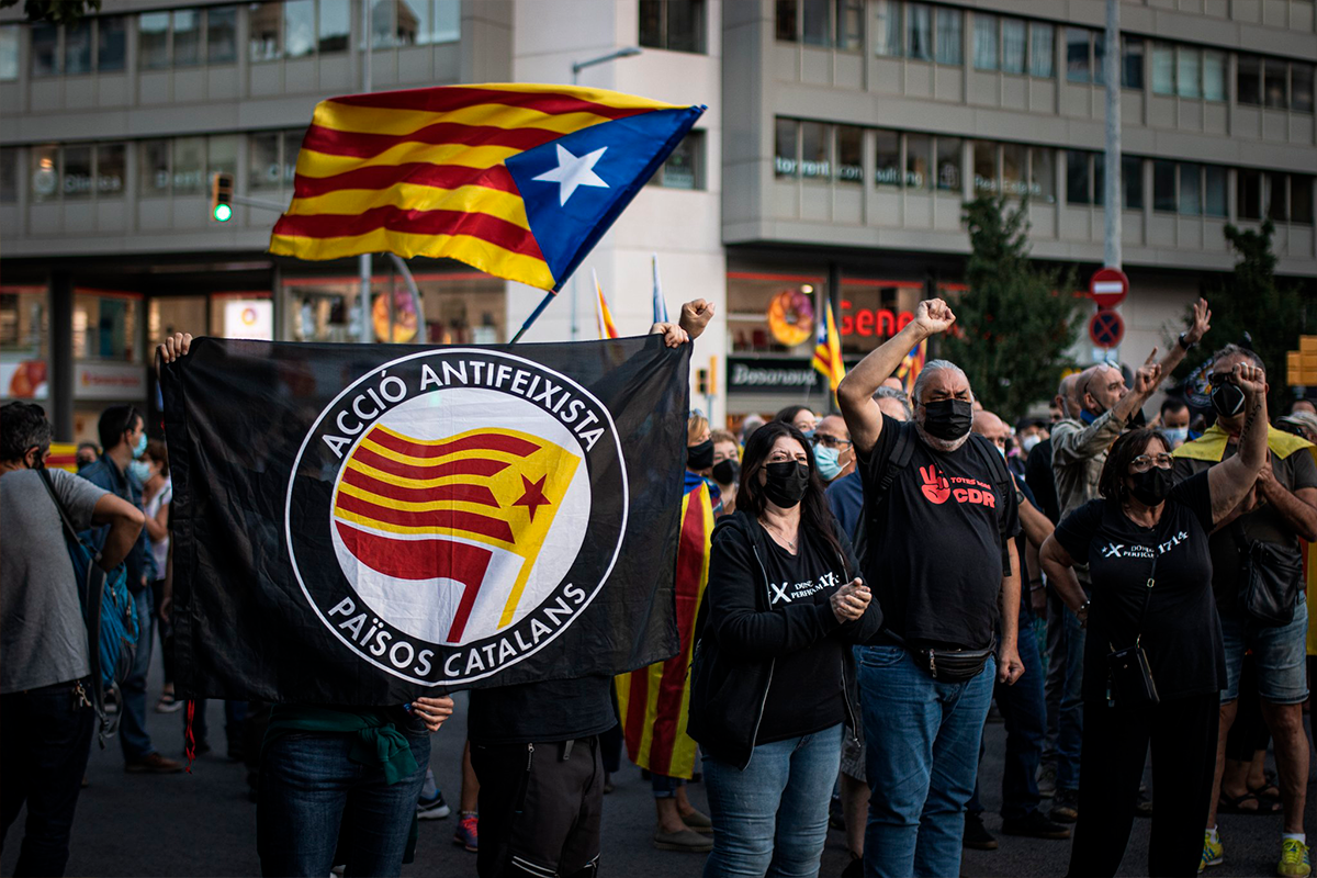 Els manifestants s’han concentrat a l’avinguda Josep Tarradellas responent a una convocatòria dels CDR que s’ha difós a través de les xarxes socials. Un cop s’han posat en marxa han tallat la plaça Francesc Macià i han començat a caminar rere una pancarta amb el lema ‘Ni un pas enrere, independència’.