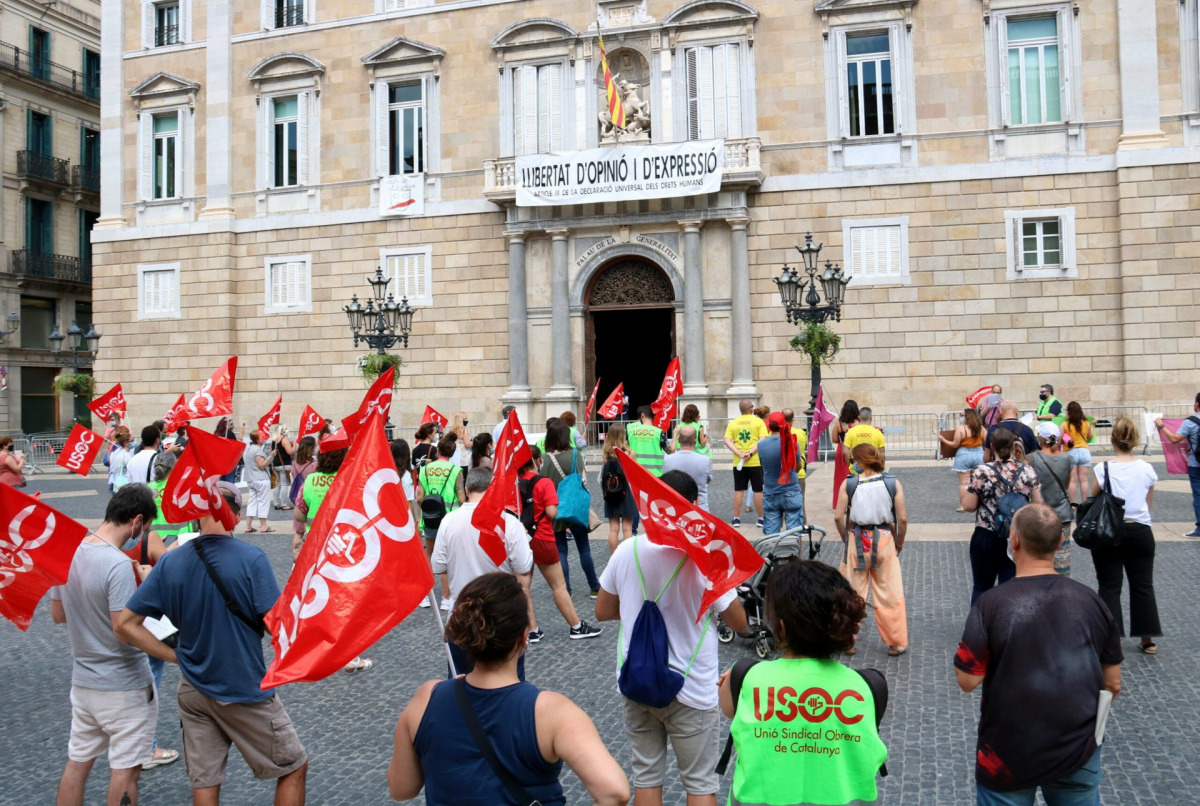 Desenes de sanitaris s’han concentrat aquest dimarts al matí davant del Palau de la Generalitat, durant el Consell Executiu, per protestar per les diferències entre professionals a l’hora de cobrar la paga extraordinària per la covid-19. En una vaga convocada per USOC i secundada pel sindicat Infermeres de Catalunya, els concentrats han demanat igualtat de tracte a tots el personal sanitari, i que es reverteixin les retallades de fa deu anys. El sindicat convocant calcula un seguiment del 30 o 40%, tenint en compte que hi ha molt personal de vacances i que els serveis mínims són importants.