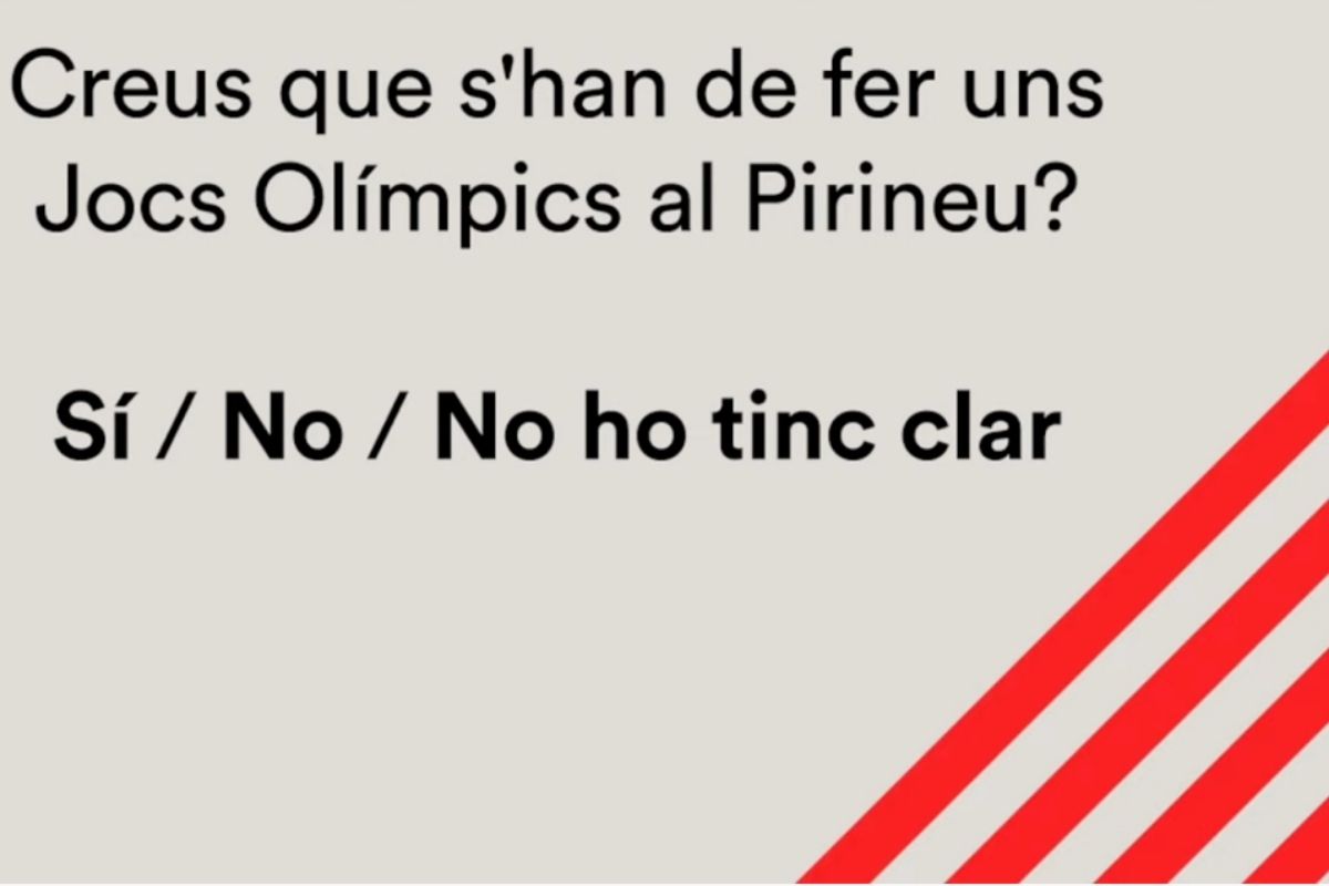 “Creus que s’han de fer uns Jocs Olímpics al Pirineu?”. El Consell per la República llançarà una consulta a la ciutadania del Principat envers els Jocs Olímpics d’hivern a Catalunya, davant la polèmica generada al seu voltant. Hi podran votar totes les persones majors de 16 anys.