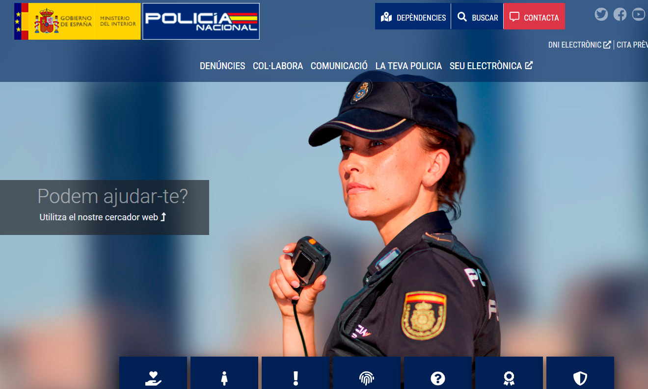 La policia espanyola va presentar dimecres una nova pàgina web que, com tantes altres institucions de l’estat espanyol, presenta l’opció de navegar-hi des dels idiomes oficials, entre ells el català, a part de llengües estrangeres com l’anglès, el francès, l’alemany o adaptades a gent amb alguna discapacitat. Però el diari dbalears ha informat d’una dada que farà enrabiar més d’un espanyol de bandereta: Hi ha dues opcions per llegir la pàgina en català, i només una pel castellà.