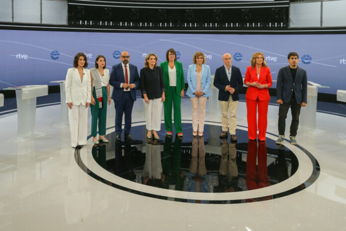L’ascens de l’extrema dreta i les seves conseqüències per al futur de la Unió Europea, la política migratòria i el racisme de determinats partits o la guerra han marcat aquest dijous el debat europeu de candidats de RTVE. Els representants del PSOE, PP, Ciutadans, Podem, Vox, Ara Repúbliques, Junts+, CEUS i Sumar s’han enfrontat també per temes nacionals com la llei d’amnistia, el català, l’estat de dret i la justícia, la reforma de les euroordres per detenir Carles Puigdemont, o els reptes de l’agenda verda i la pagesia. El candidat de Junts, Aleix Sarri, ha parlat íntegrament en català, mentre que la republicana Diana Riba, que també representava el BNG i Bildu, ha parlat en català però ha fet la majoria d’intervencions en castellà.